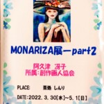 春の訪れとともにおしゃれな街横浜野毛町の茶処“しんり”に於いて創展会員阿久津冴子さんの個展“MONARIZA展”が2022年3月30日から5月1日までロングランで開催されました。